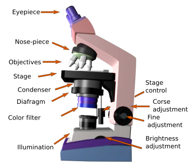 - Place stage micrometer on stage and focus using 4x objective lens. Total magnification = x40 (x10 due to other lens)