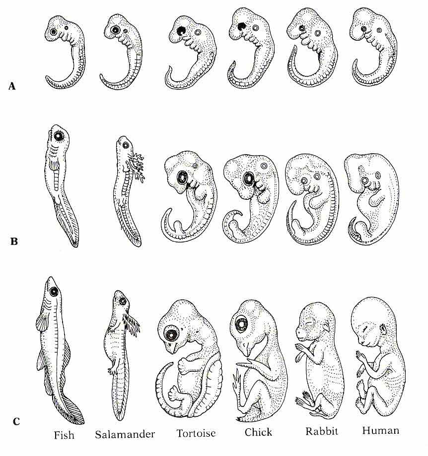 • Darwin’s theory of evolution noted that all vertebrates have gill slits and tails in the early stages of embryo formation even though these features may be lost or modified in the adult-form phenotype.
