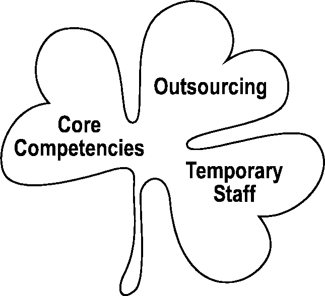 • Peripheral, temporary or part-time workers, less secure, easy to replace, less likely to be committed to the organisation’s aims and objectives